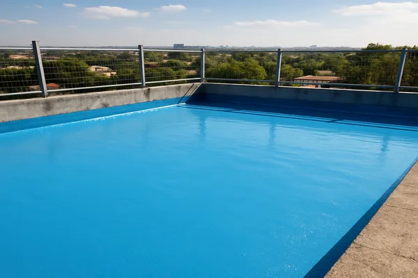 - Lajes com tráfego frequente — terraços usados como área de lazer, estacionamentos sobre laje. A membrana é fina e não resiste a pisoteio constante sem proteção mecânica adequada