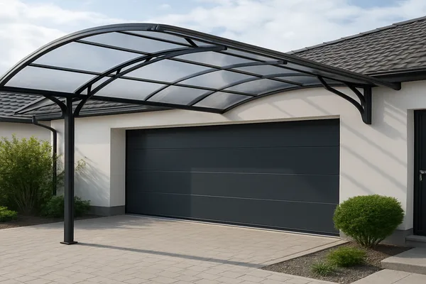 O toldo de policarbonato é, de longe, o modelo mais instalado em garagens residenciais no Brasil nos últimos anos. Ele consiste em uma estrutura metálica (alumínio ou aço) coberta com chapas de policarbonato — aquele material plástico transparente ou colorido, extremamente resistente a impactos.